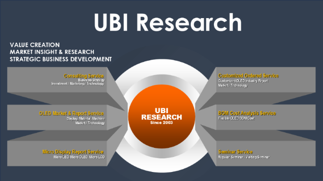 | UBI Research, located in South Korea, is a market-leading Research Company, providing Business Consulting, various OLED and Micro LED-related Reports, and market tracker service. Please visit our booth and take a look at our technical reports published in 2025, featuring the latest information you're seeking! |