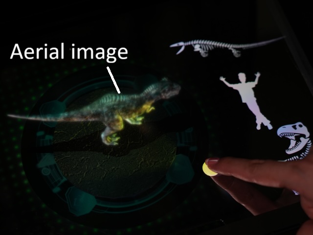 | There is an aerial imaging optical system that projects a virtual character onto a table and allows users to view it from above. We propose a method for this optical system that efficiently utilizes displays and optical elements to increase the display size of aerial images while maintaining the vertical viewing range and improving the luminance and image quality of the aerial image compared to conventional methods. In a demonstration, the virtual character was observed to be of such high quality that even the facial expressions could be seen. | ||