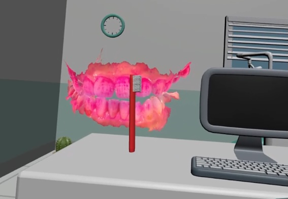 | Brushing teeth every day is tough work. To help maintain motivation for tooth brushing, we developed tailor-made tooth brushing training. In the VR space, your own teeth appear right before your eyes, allowing you to learn their shape and where plaque tends to accumulate. You can clearly see the shape of your back teeth, which are difficult to view in a mirror. Furthermore, you can brush your own teeth before your eyes in the VR space (Figure 1). Using this tool may foster a sense of attachment to your own teeth, making you want to brush them every day. | ||