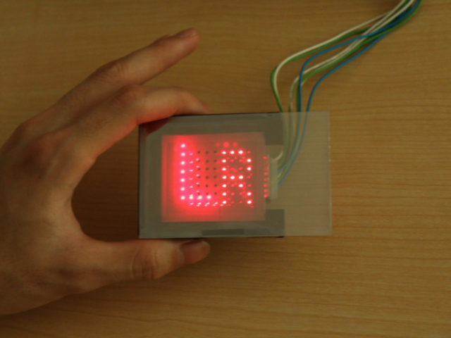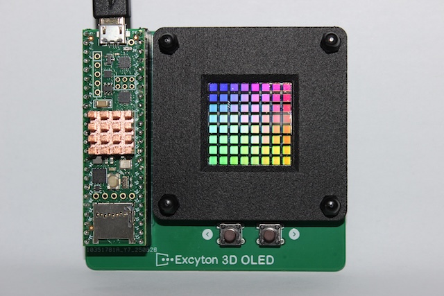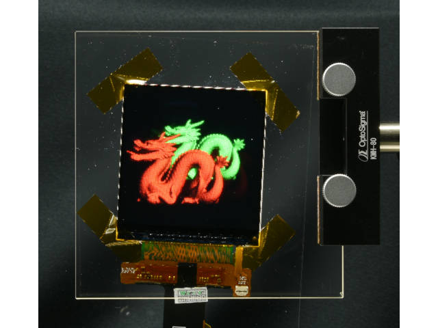 | Excyton will showcase a prototype 8 x 8 PM-OLED display with vertically stacked red, green and blue sub-pixels. Each sub-pixel is independently controllable. The display renders the sRGB colour gamut with 8 bits-per colour and has peak brightness of 180 cd/m2 at the D65 white point with less than 5% brightness variation across all pixels. To the best of our knowledge, this is the first demonstration of an OLED display with vertically stacked sub-pixels. This pixel design has potential to increase display lifetime, brightness, resolution and efficiency, as well as enabling full-colour displays at low resolution. | ||