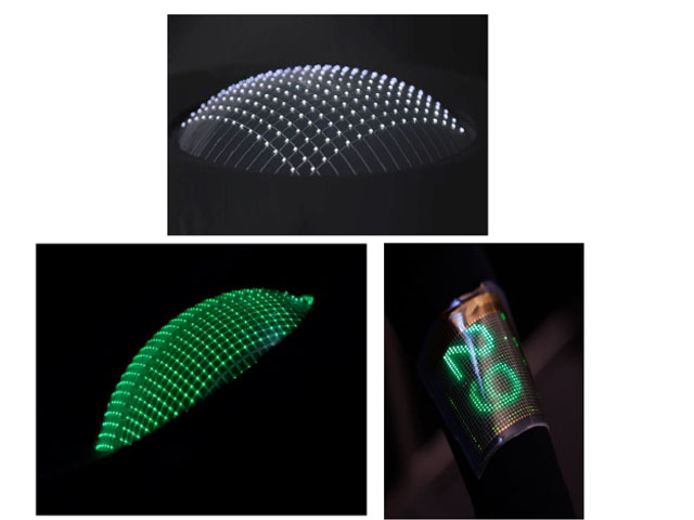 | We have developed highly stretchable deformable LED displays with up to 40% strain using mini- or micro-LEDs for future immersive dome-style displays and wearable display applications. LED pixels are connected with stretchable conductive wiring that can expand and contract freely, so it can be formed into different shapes, such as a dome, or wearable displays to show images on the skin. Stretchable displays that can be deformed into different shapes, allowing users to enjoy realistic and immersive content anytime and anywhere. | ||