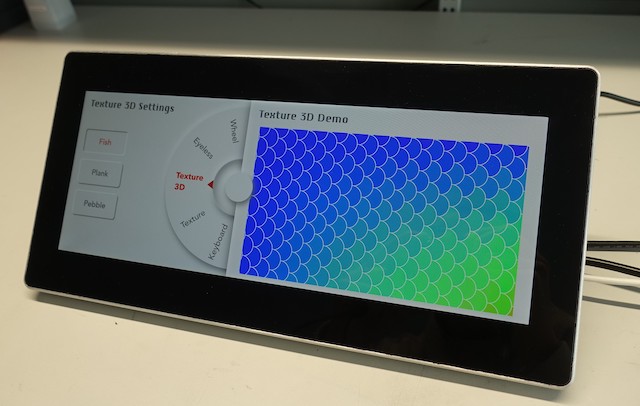 | A 12.3” LCD display for the automotive market has been designed to produce tactile feedback thanks to ultrasonic lubrication effects at any points of the display surface. This was made possible thanks to patented piezoelectric actuators and unique know-how in ultrasonic wave propagation. To experience the potential of so-called surface haptics to transform future car's interiors, a dedicated HMI has been implemented that relies on tactile feedback. This advanced prototype has been improved in terms of cost and is ready to be integrated in cars. | ||