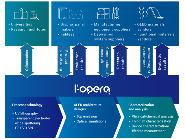 | i3-opera drives innovation through applied research and meets global market demands by delivering tailored solutions to our customers. We are commissioned to design and evaluate customized organic devices-including OLEDs, OPDs, and OPVs-and to develop process technologies for our clients. All steps are completed in-house, from substrate preparation and test fabrication to film characterization, lifetime measurement, and physical analysis. We uphold strict confidentiality for each customer. Visit our booth at the International Conference Center Hiroshima to learn more about our services. |