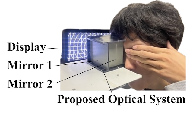 | This demonstration presents a novel Maxwellian optical system that combines a Transmissive Mirror Device (TMD) with our proposed Spherical Multi-Pinhole (SMP). The system eliminates the image loss that occurs during eye rotation in conventional setups, allowing stable and clear image presentation independent of gaze direction. Moreover, owing to the characteristics of Maxwellian viewing, participants with refractive errors such as myopia or hyperopia can perceive sharp retinal images without the need for corrective lenses. The proposed system achieves a wide field of view and shows strong potential for application in next-generation VR/AR display technologies. | ||